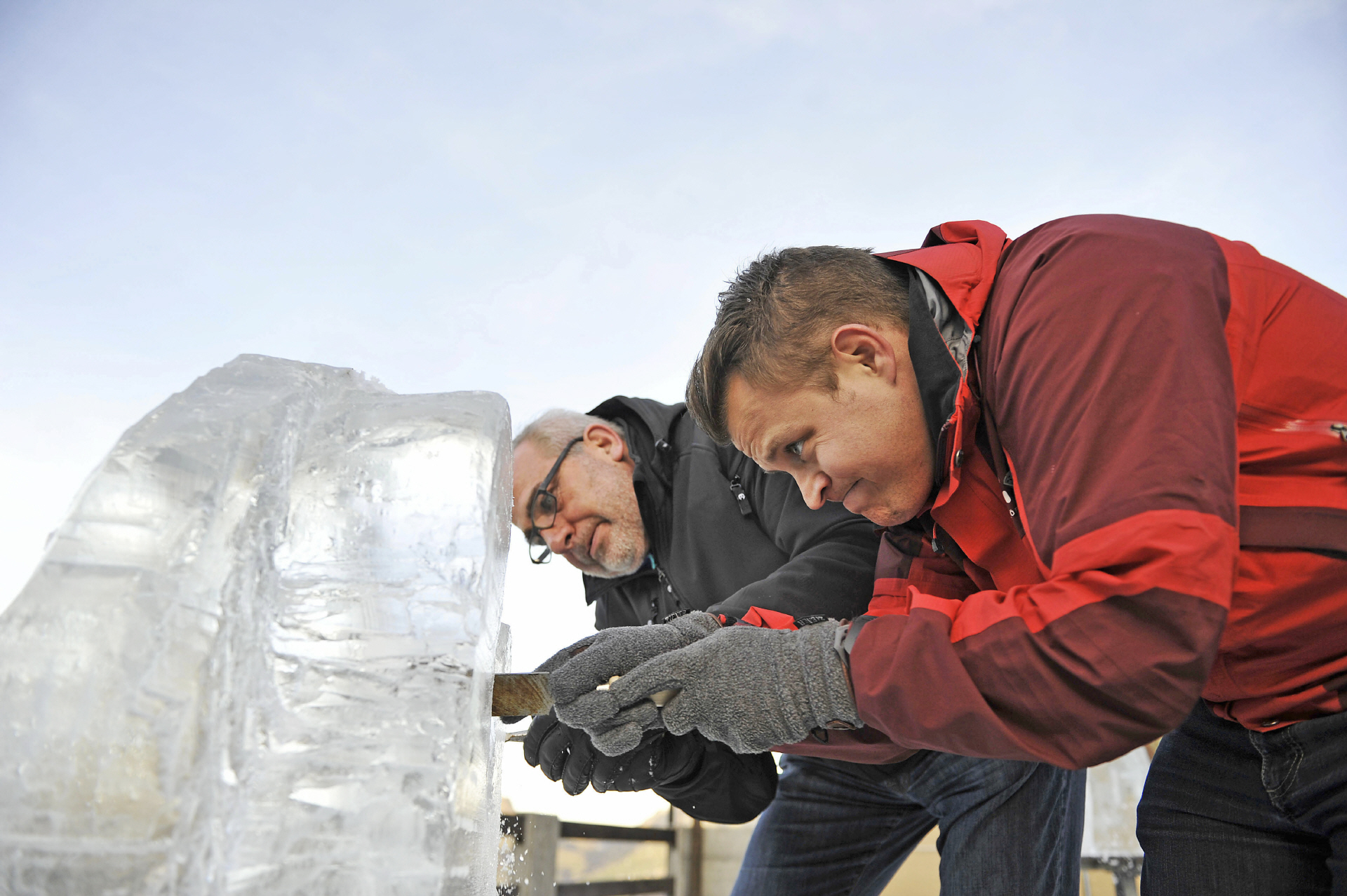 Eisblöcke, Schnitzwerkzeug, Handschuhe, Instruktor/en