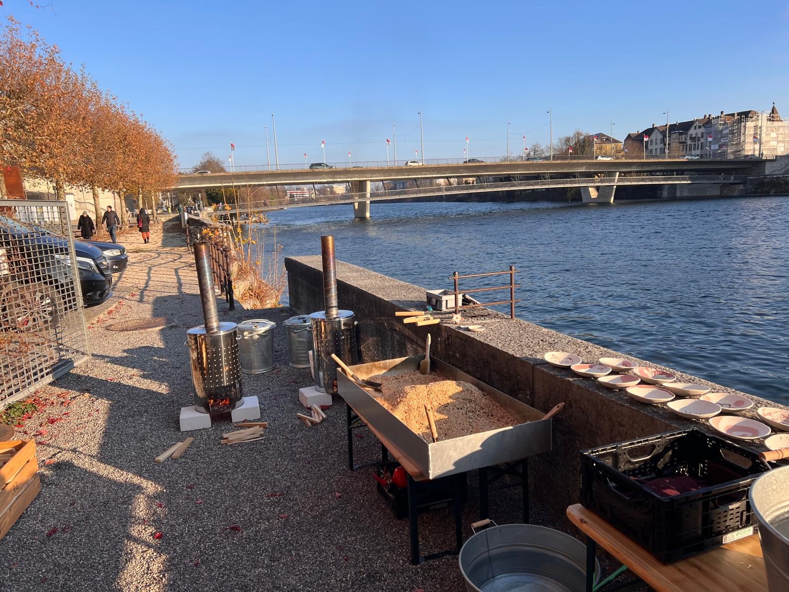 Die Schalen und Objekte werden zunächst durch die Gäste mit speziellen Rakufarben nach Lust und Laune gestaltet, anschliessend im Brennofen auf ca. 950 Grad erhitzt bis die Farben schön glänzen. In dieser Zeit können die Gäste sich an einem kleine Apero stärken und dabei gleichzeitig die Öfen mit Holz bestücken.