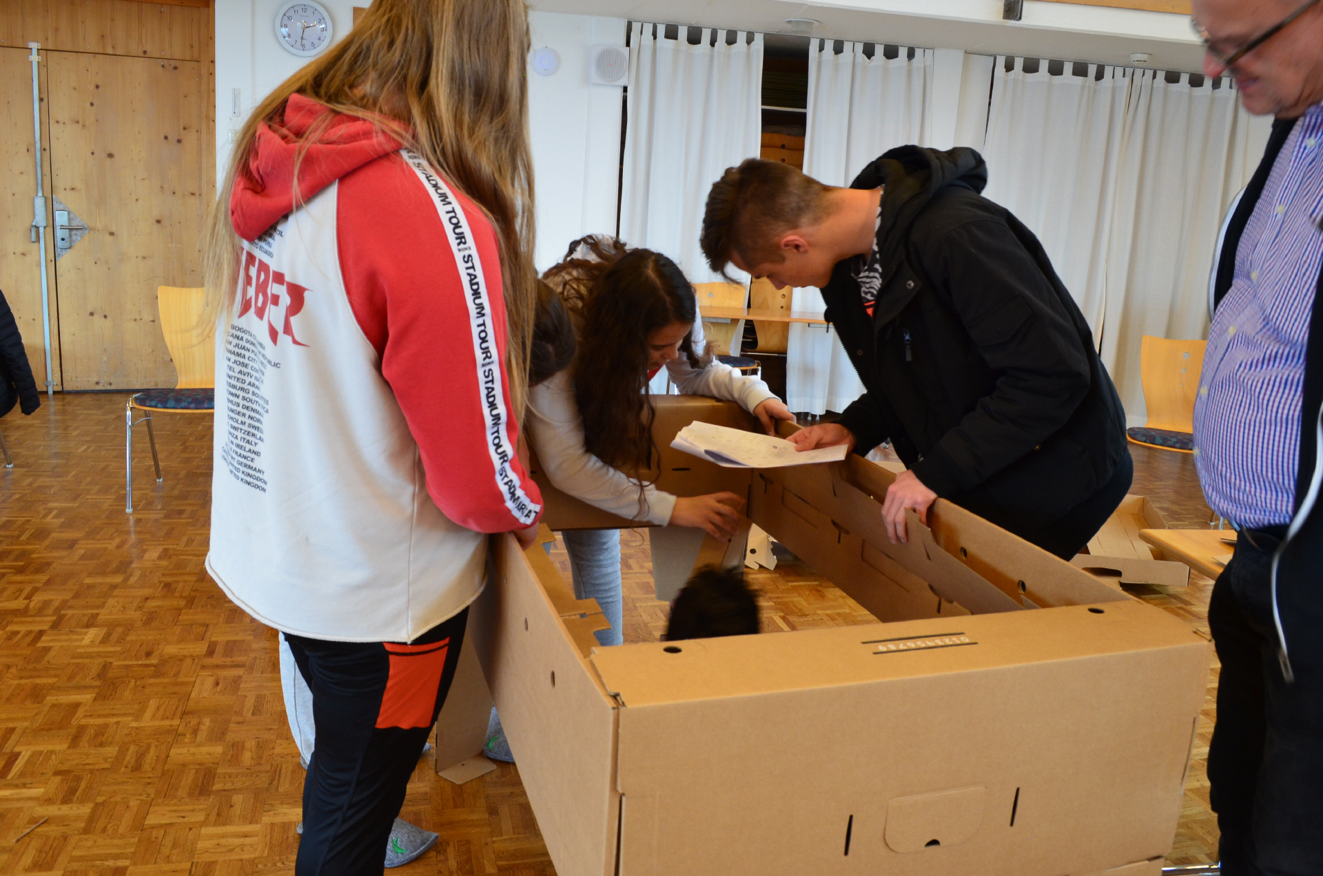 Jedes Team erhält von uns einen "Oeko-Bausatz" und baut sich daraus seinen stabilen Fussballkicker aus Karton. Logisches Denken und gutes Teamwork hilft Euch dabei, innert kürzester Zeit Euren Töggelikasten fertig zu stellen.